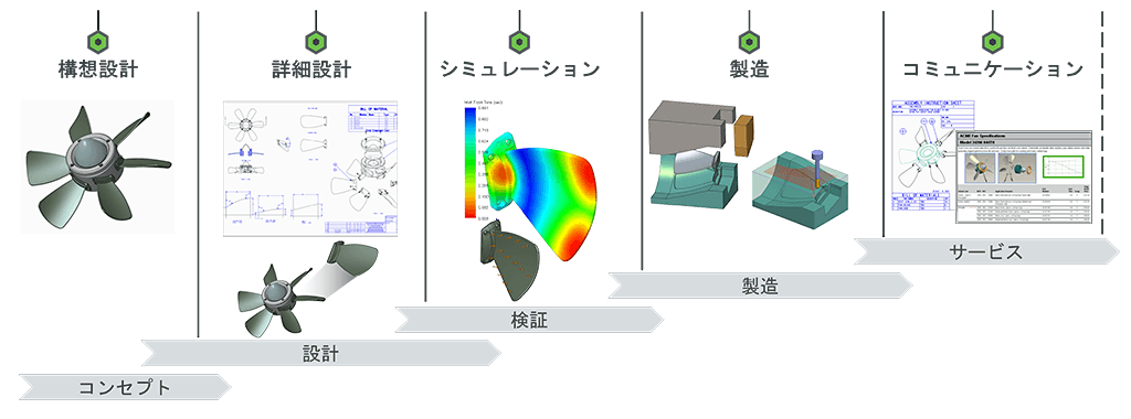 簡単に習得できるだけでなく、モデルベースのアプローチにより、製品設計の初期段階から製造以降のプロセスまでをシームレスに結びつけます。