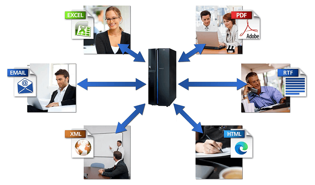 IBM i のスプールファイルやデータベースを変換・配布するソリューションです。たとえば出力済みのスプールファイルをPDFへ変換し、メールやftpなどで自動転送したり、スプールファイルやDB(物理ファイル)をExcelやXMLなどのファイル形式へコンバージョンできます。